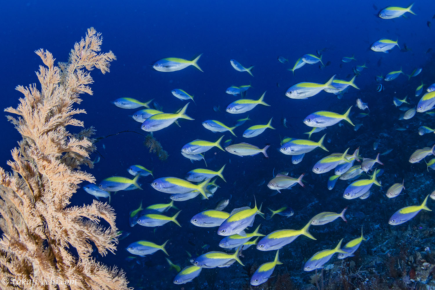 そんな高元崎で見られた生物は、巨大なウミウチワに絡むウメイロとタカサゴ、ムレハタタテダイの群れや、海中を埋め尽くすムロアジの群れにアッタックするツムブリの群れや巨大カンパチ、ロウニンアジ、ギンガメアジの群れなど。これが押さえのポイントか!と唸るほどの魚影だった。