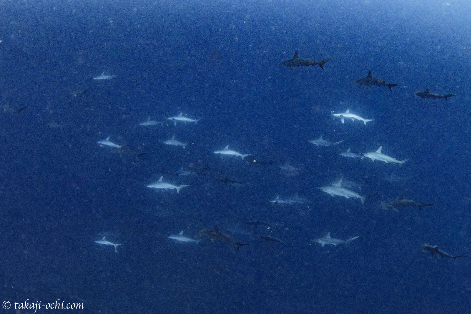 と期待した。確かに、ドラム缶サイズのカマストガリザメが10匹以上、ハンマーの群3群など、それなりの成果はあったが、濁りと浮遊系生物の数がすごくて、やはりまともに撮影ができなかった(涙)。